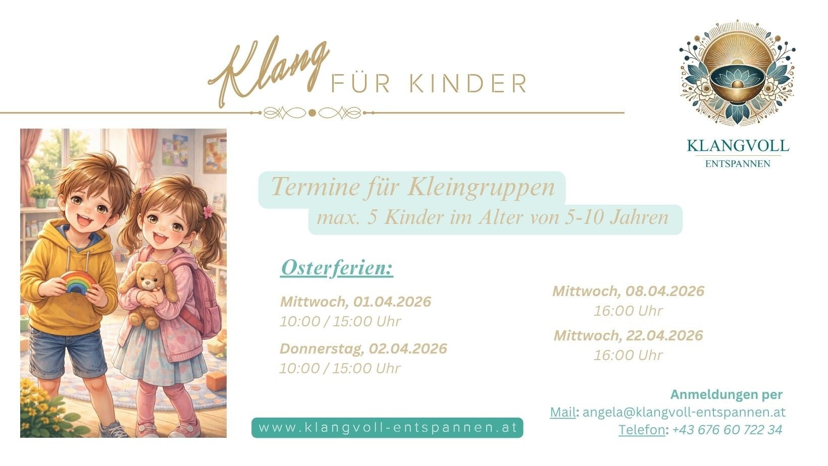 Melde dich für deinen Wunschtermin - Anruf oder WhatsApp-Nachricht +43 676 60 722 34 / per Mail angela@klangvoll-entspannen.at